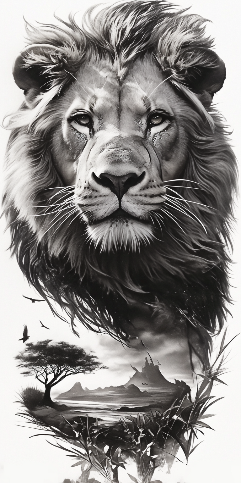 A premium tattoo design pack featuring over 2,000+  AI-crafted, artistic designs — inspired by Lions.